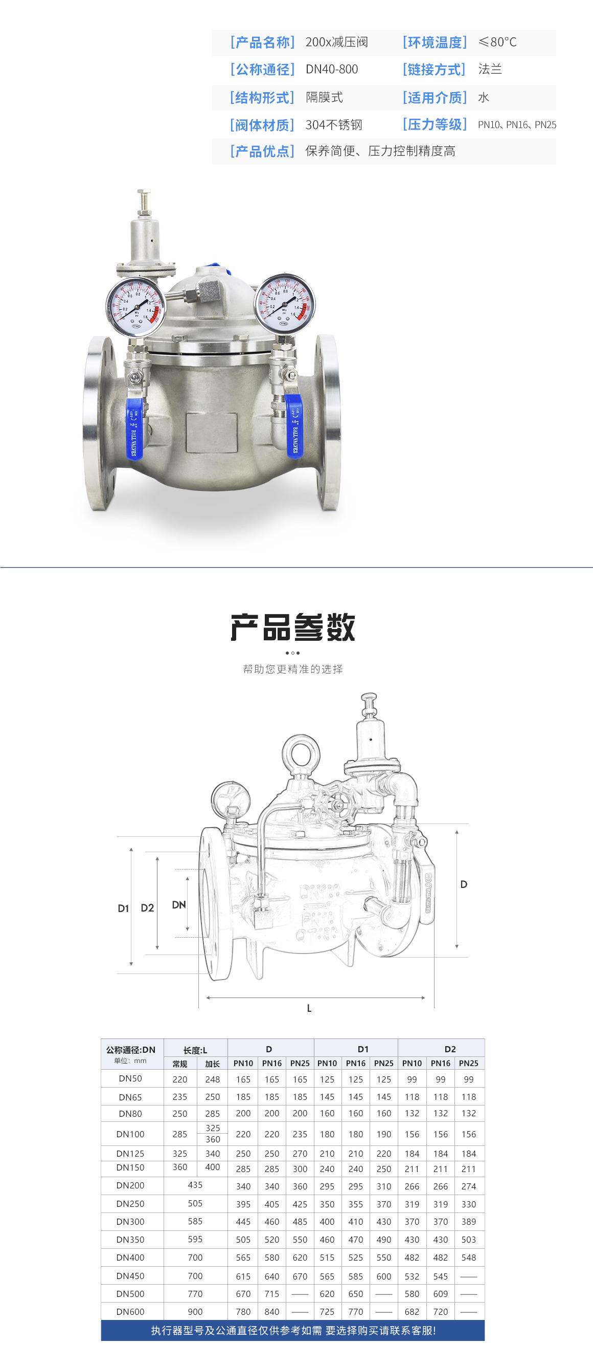 200X不銹鋼先導式減壓閥產品資料介紹 200X不銹鋼先導式減壓閥型號規格
