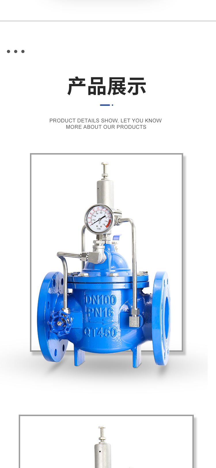 500X安全泄壓閥產品用于高層建筑、生活區等供水管網系統及城市供水工程。500X安全泄壓閥用于消防或其他供水系統中,以防止系統超壓或維持消防供水系統的壓力。消防泵關閉后還可以減小水錘的沖擊。也用于大型供水系統的水錘消除裝置.并且閥門控制系統的閥前處裝有一個自清潔濾網,利用流體特性,使比重較大、直徑較大的懸浮顆粒不會進入控制系統.符合系統循環,使閥門能正常地運行。系統動作平穩、強度高、使用壽命長、適用于600口徑以下的管道。